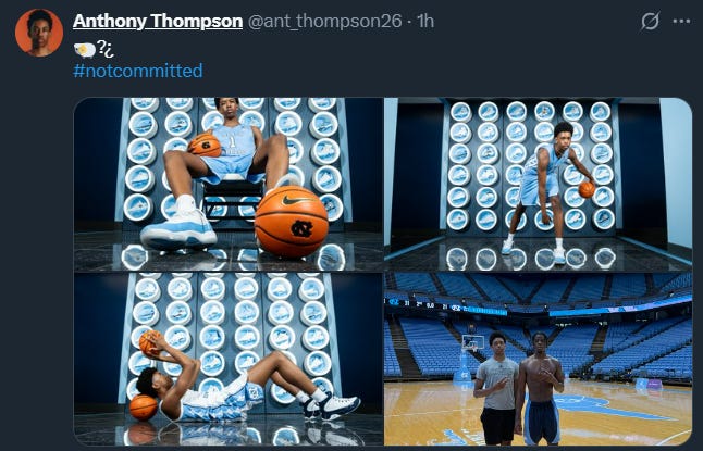 The big recruiting news over the weekend was the official visit of 5-star wing Anthony Thompson. Here are some social media photos from his visit. From the looks of his height, standing next to 6-10 Caleb Wilson, he appears to be very tall for a small forward…a “stretch four,” perhaps?