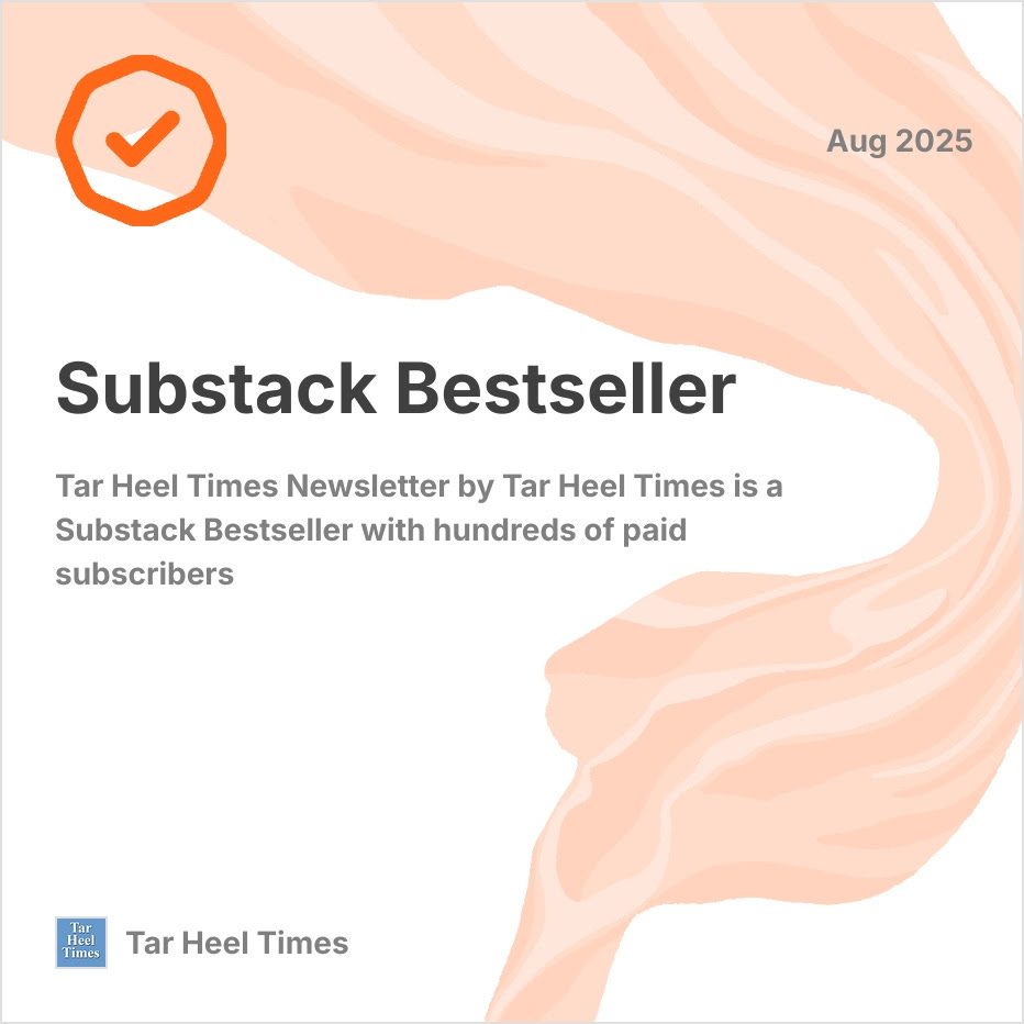 Before we start, here’s a huge THANK YOU to everyone who has subscribed to the Tar Heel Times Newsletter! The reception has been unbelievable. In less that one month, we’ve made the “Substack Bestseller” list!