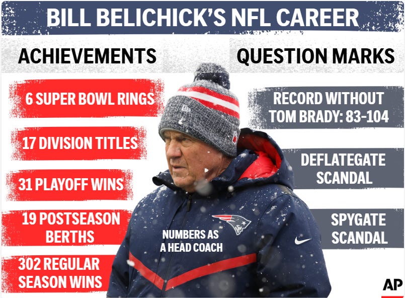 In surprise news of the week, Bill Belichick did not receive enough votes to be inducted into the Pro Football Hall of Fame in his first year of eligibility, failing to receive 40 of the 50 necessary votes. Apparently, several voters decided to “punish” Belichick for his alleged involvement in the infamous “Deflate-gate” and “Spy-gate” NFL scandals. This is not a good look for the voting committee, and blowback by fans and media was fierce.