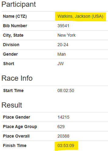 And former UNC “Blue Steel” guard Jackson Watkins completed his second marathon, running a personal best time of 3:53:09 at the Chicago Marathon on Sunday morning.