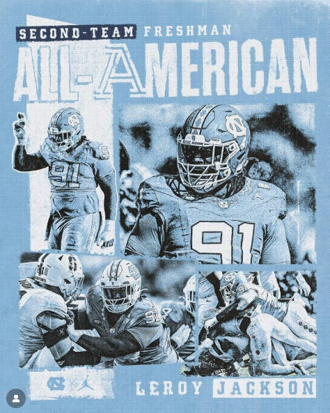 Congratulations to North Carolina defensive lineman Leroy Jackson, who was named Second Team Freshman All-American by The Athletic.