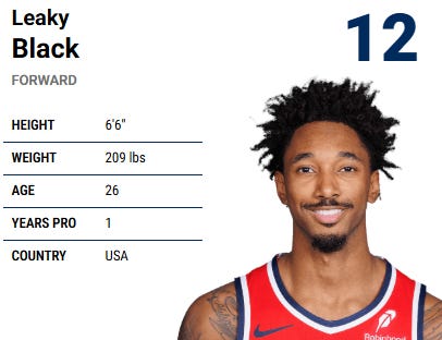 A quick story…I once linked to an article on Tar Heel Times during Black’s time at UNC critical of the fact that there appeared to be no future NBA talent on that team. Shortly after, I received a fiery email from Leaky’s mother, Carla, letting me know in no uncertain terms that Leaky would 100% be playing in the NBA someday. Well, mama’s always right. Congrats, Leaky (and mom)…I still miss hearing her “Dee-Fense!” chants from the stands 📣