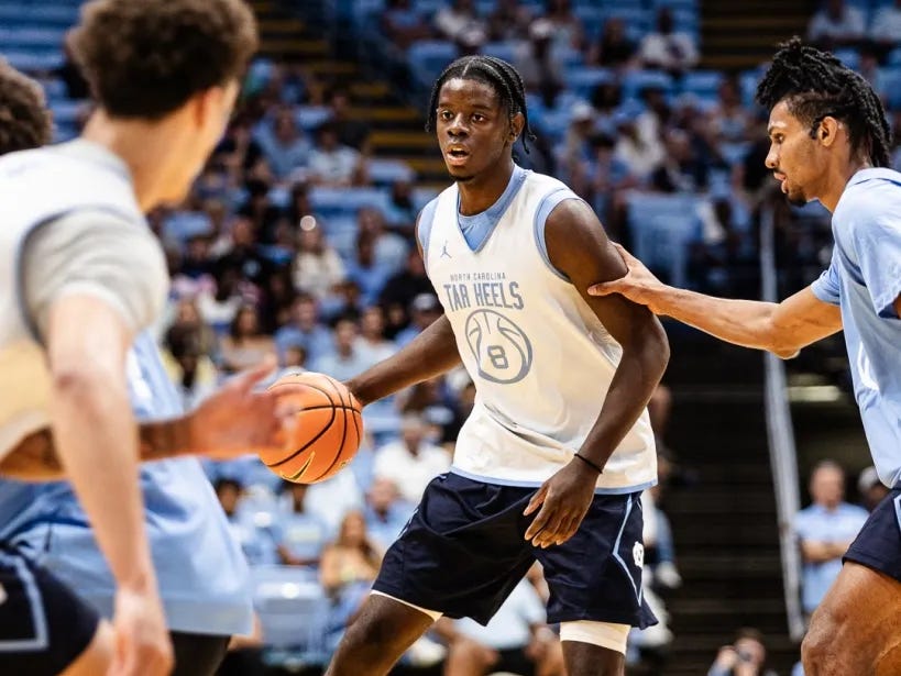 Tar Heel fans got their first look at the 2025-26 UNC men’s basketball team on Saturday afternoon, as UNC held its annual Blue-White scrimmage at the Smith Center. For the record, the White team won 55-50, but this exhibition was more about getting a look at the individual players rather than winning or losing.