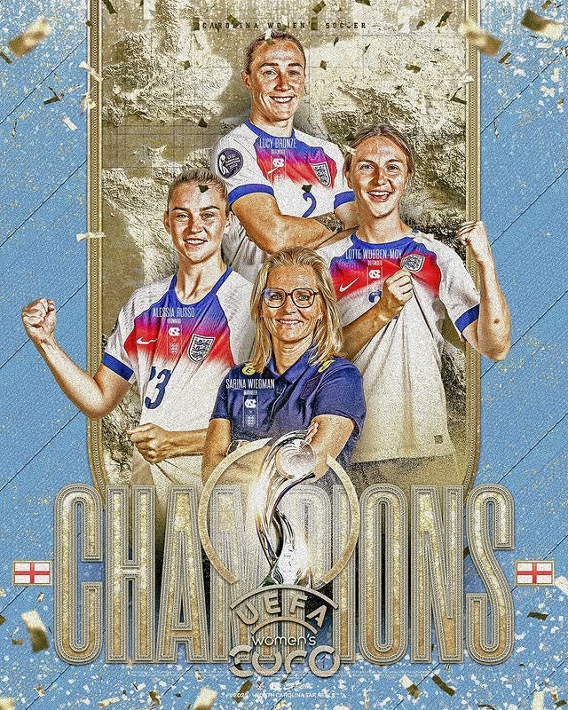 Lastly, England won back-to-back UEFA Women’s Euro Championships behind 4 Tar Heels: Coach Sarina Wiegman, Lucy Bronze, Alessia Russo, and Lotte Wubben-Moy.