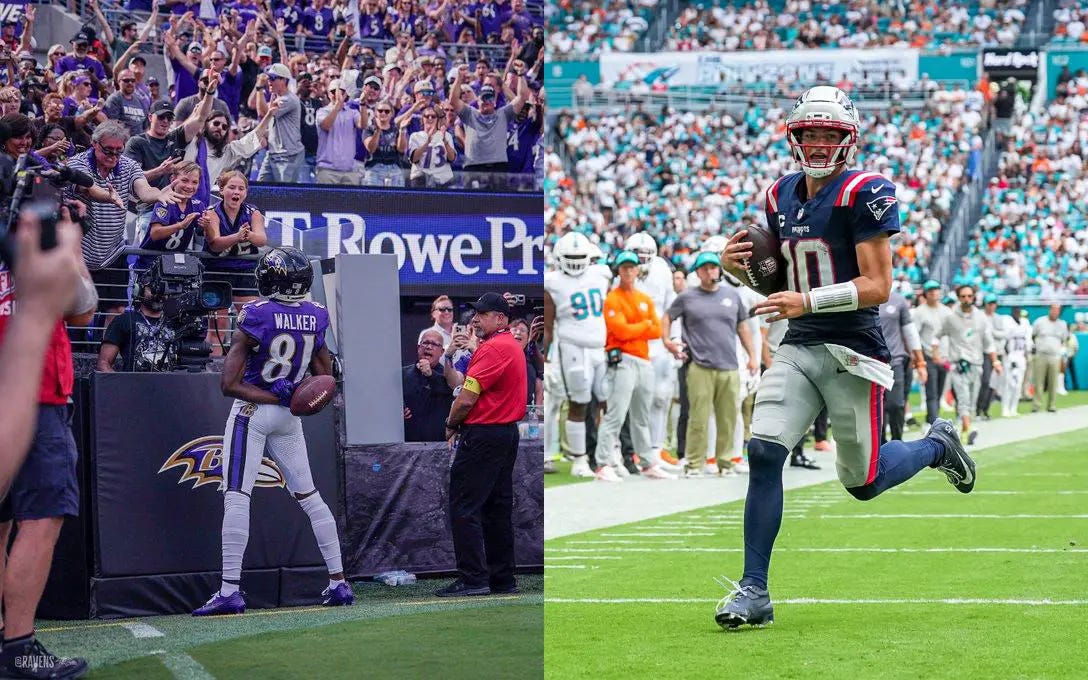 - Drake Maye, New England (2 passing TDs, 1 rushing)