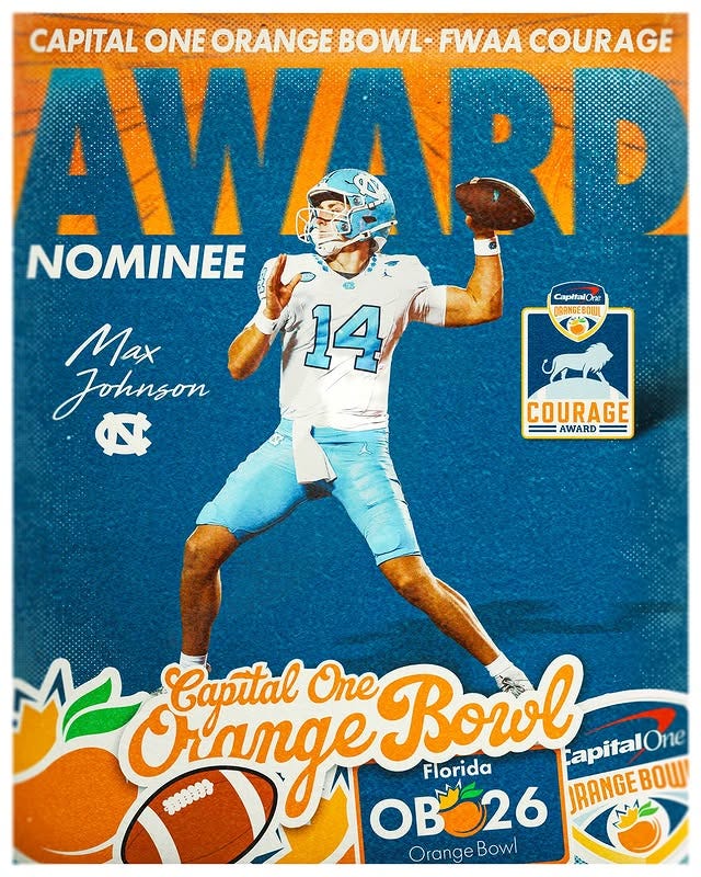 While we’re on the topic of backup quarterbacks, Carolina QB2(?) Max Johnson was nominated Wednesday for the Orange Bowl - FWAA Courage Award for his courageous comeback from last season’s devastating leg injury.