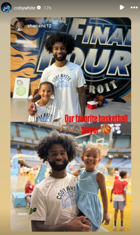Former UNC and current Chicago Bulls guard Coby White held his annual basketball camp for kids at the Smith Center.