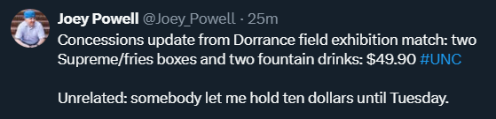 Side note: Concession prices look to have jumped significantly this year. I guess all of that Bill Belichick and NIL money has to come from somewhere.