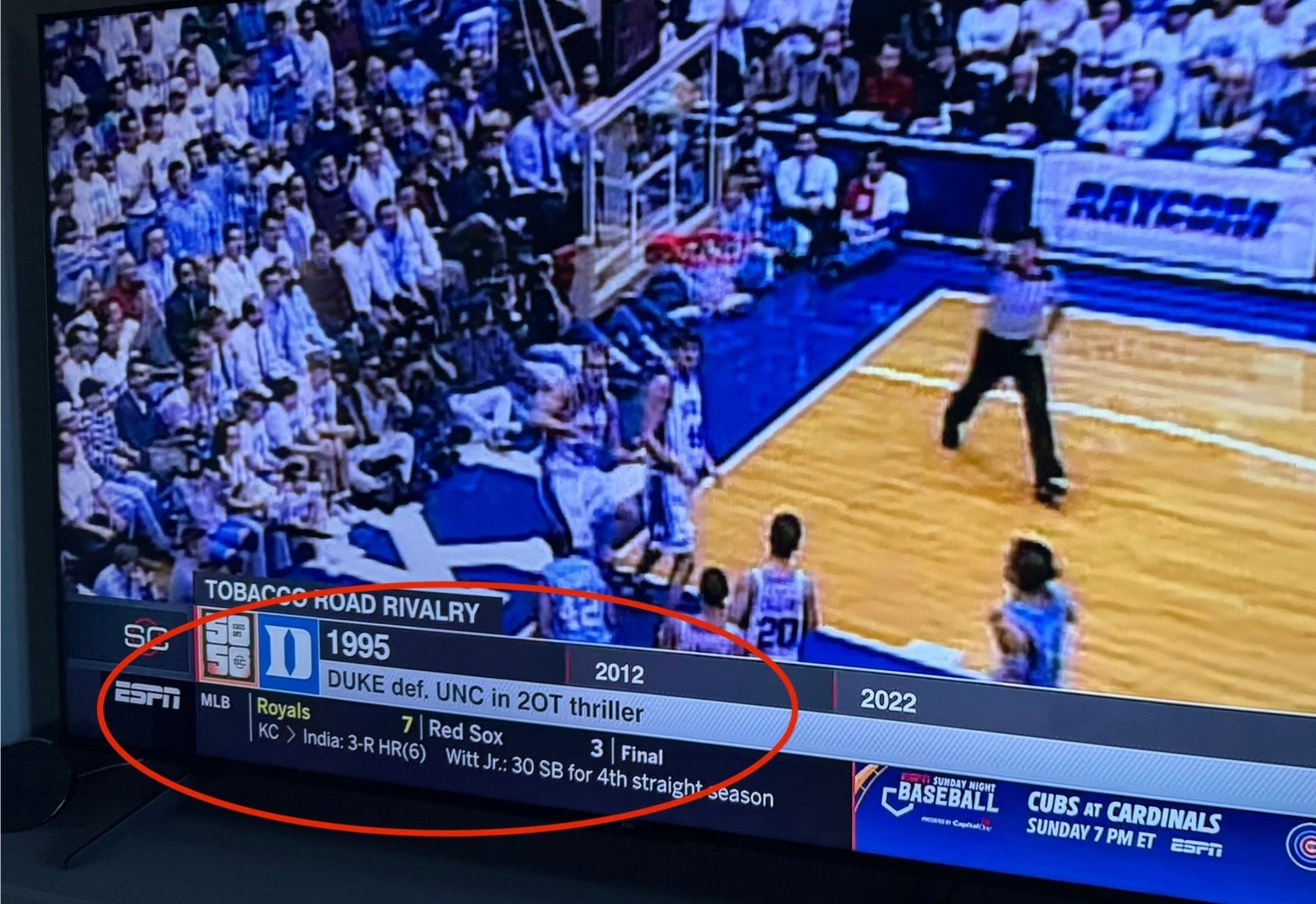 Apparently, a lot of folks (including those at ESPN) seem to forget that UNC actually won this game, 102-100, at Cameron Indoor Stadium after Duke’s Jeff Capel hit a halfcourt shot to send the game into overtime.